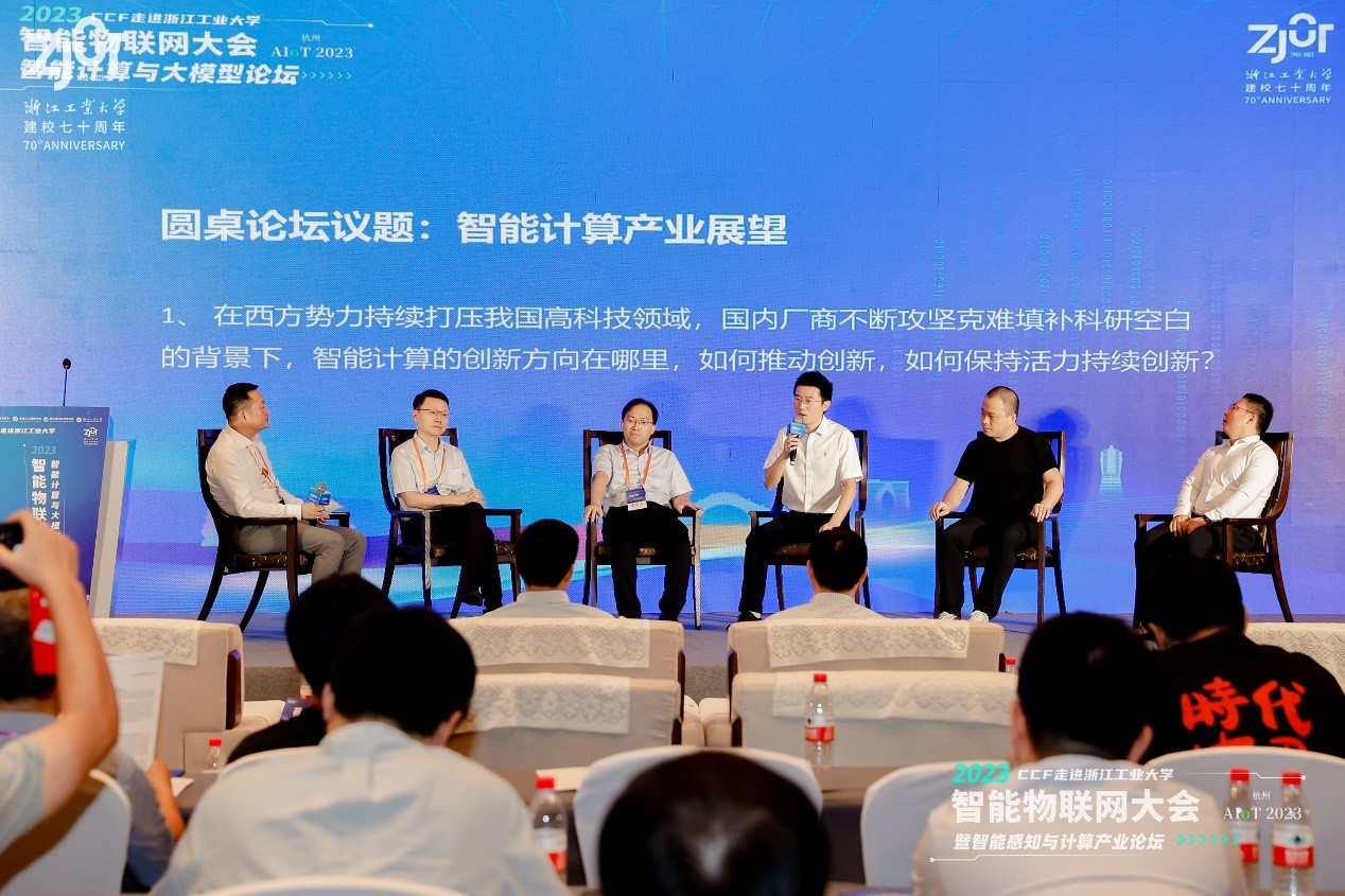 在圓桌論壇環(huán)節(jié),杭州天寬科技有限公司副總經(jīng)理張元元、AIII人工智能產(chǎn)業(yè)研究院院長朱兆穎、浙江工業(yè)大學(xué)計算機科學(xué)與技術(shù)學(xué)院副院長陳鐵明、華為云計算技術(shù)有限公司數(shù)字化轉(zhuǎn)型總監(jiān)胡明超、安恒信息技術(shù)有限公司研究院副院長稅雪飛、杭州加減智能科技有限公司總經(jīng)理彭帥6位嘉賓,以“智能計算產(chǎn)業(yè)展望”為話題,共同探討了當(dāng)前國際形勢下,如何推動智能計算的創(chuàng)新,政府如何制定政策以解決智能計算產(chǎn)業(yè)發(fā)展帶來的數(shù)據(jù)安全、隱私保護(hù)、能源消耗、崗位替代等社會問題。