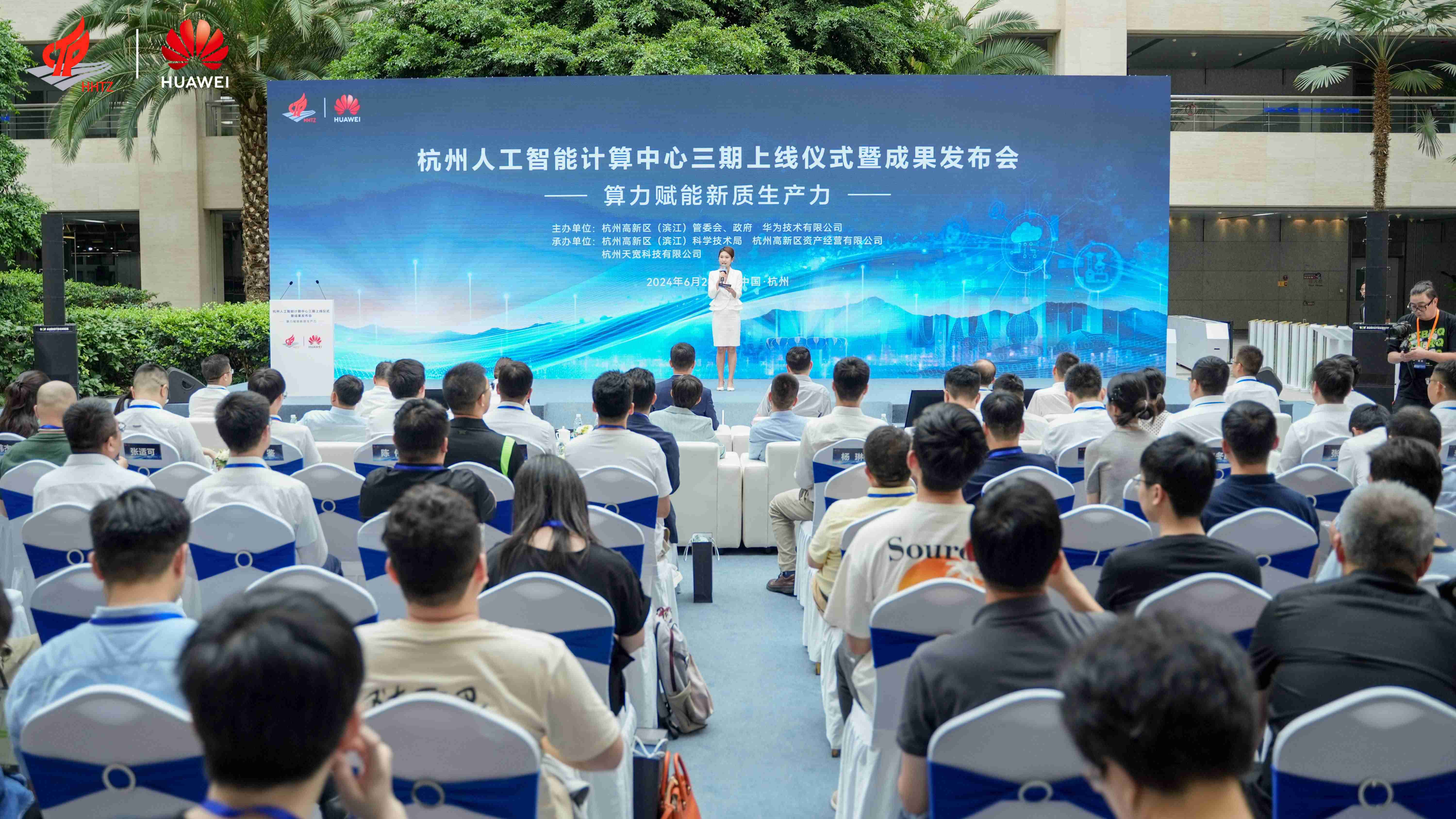 算力賦能新質(zhì)生產(chǎn)力。6月28日,由天寬承建并參與運(yùn)營(yíng)的杭州人工智能計(jì)算中心成功舉辦三期上線儀式暨成果發(fā)布會(huì)。該活動(dòng)由杭州高新區(qū)(濱江)管委會(huì)、政府和華為技術(shù)有限公司主辦,天寬聯(lián)合杭州高新區(qū)(濱江)科學(xué)技術(shù)局、杭州高新區(qū)資產(chǎn)經(jīng)營(yíng)有限公司共同承辦。杭州高新區(qū)(濱江)管委會(huì)主任、區(qū)長(zhǎng)鄭迪,杭州市經(jīng)濟(jì)和信息化局一級(jí)調(diào)研員黃左彥,杭州市發(fā)展與改革委員會(huì)創(chuàng)新與高技術(shù)處副處長(zhǎng)吳燁琳,杭州高新區(qū)管委會(huì)副主任王理生,華為公共事業(yè)系統(tǒng)部副總裁夏侯宇,華為浙江產(chǎn)業(yè)發(fā)展與生態(tài)部總經(jīng)理侯勇,天寬董事長(zhǎng)盧曉飛,區(qū)發(fā)改局、區(qū)經(jīng)信局、區(qū)科技局、區(qū)資產(chǎn)公司部門領(lǐng)導(dǎo)等出席,省市相關(guān)人工智能產(chǎn)業(yè)企業(yè)、媒體等百余名嘉賓參加。
