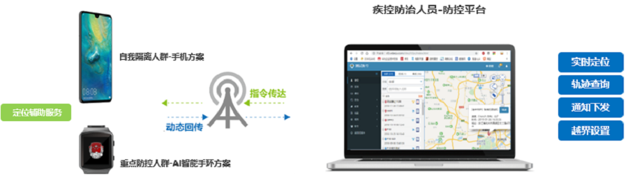 為了助力抗戰(zhàn)在防控一線的工作人員,減少他們的接觸感染風險,提升疫情防控效率,有效管控疑似感染人群,我公司結合自身行業(yè)優(yōu)勢,充分運用AI、大數(shù)據(jù)、云計算、移動互聯(lián)網(wǎng)等先進技術,為一線防控人員提供成熟的智能定位監(jiān)測“智慧防控”解決方案。