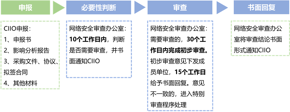 通過(guò)“自主預(yù)判,主動(dòng)申報(bào)”的方式,在采購(gòu)網(wǎng)絡(luò)產(chǎn)品和服務(wù)時(shí),CIIO運(yùn)營(yíng)者應(yīng)當(dāng)預(yù)判產(chǎn)品或服務(wù)投入使用后所帶來(lái)的國(guó)家風(fēng)險(xiǎn),如可能產(chǎn)生影響,主動(dòng)向網(wǎng)絡(luò)安全審查辦公室申報(bào)。